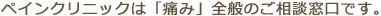 ペインクリニックは慢性的な痛みを軽く(緩和)する治療です。痛みの治療を専門的に行います。